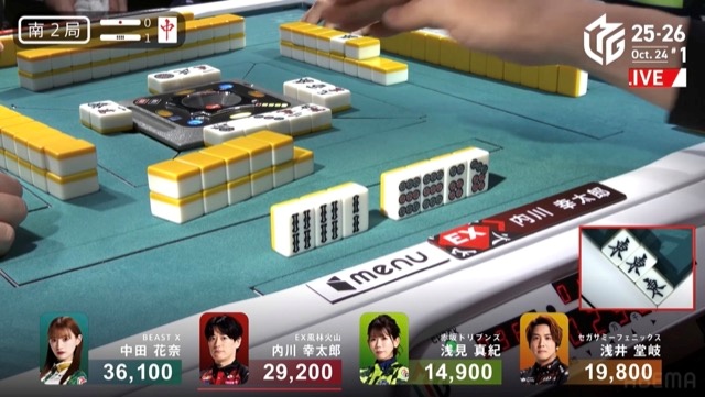 残りツモは1回。テンパイ取りへ動いてみせた中田だったが、このポンで海底が内川に回った。
