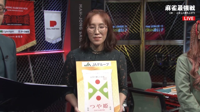その模様はAbema麻雀チャンネルにて生配信され、A卓からは保里瑛子プロ・山脇千文美プロが勝ち上がった。また1位勝ち上がりを決めた保里プロにはJA山形より、つや姫5kgが贈られた。