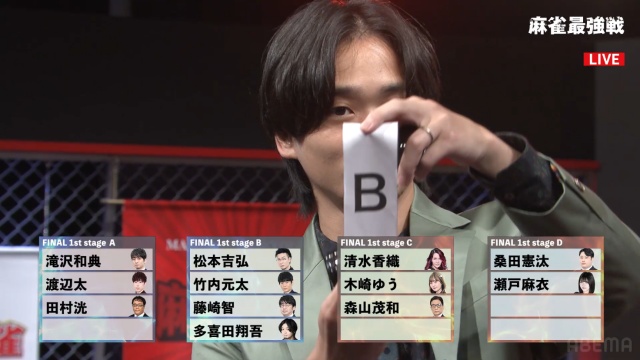 そして抽選によって多喜田プロは、ファイナルB卓に入ることが決まった。