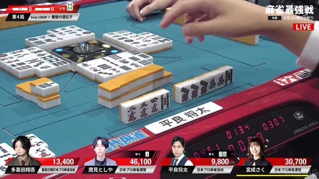 最悪なのは多喜田・平良のツモアガリで親被りし、2着以下が接戦になること。