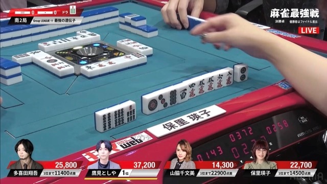 しかし、保里はそれを良しとせず、どちらの字牌にも手をかけなかった。