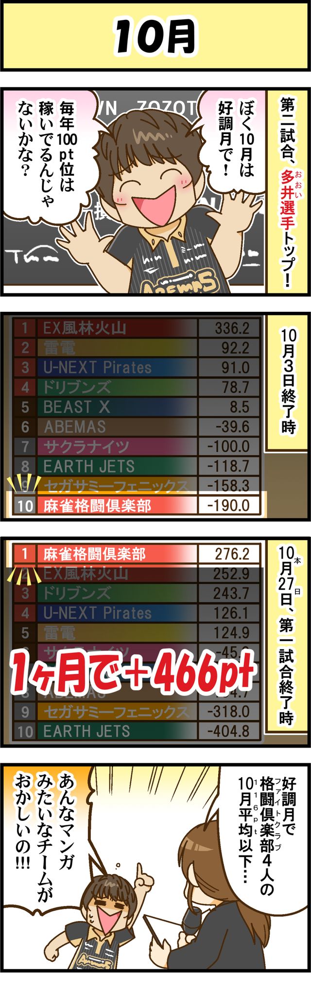 【Mリーグ2025-26】多井隆晴選手、第2試合トップで好調10月を実証!【Mリーグほぼ毎日4コマ】藤島じゅん/VOL.977
