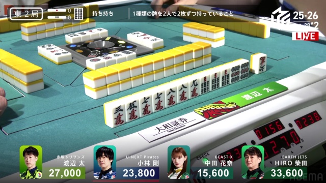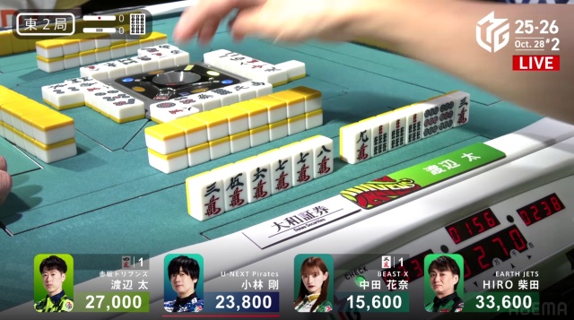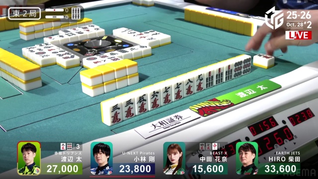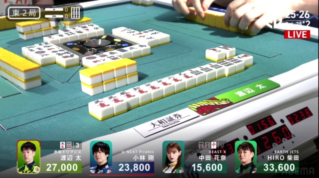 前局、HIRO 柴田の満貫が決まり、迎えた東2局。