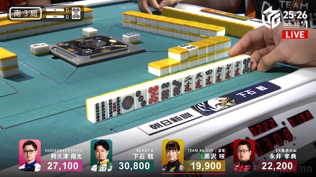 Mリーグデビュー戦では南家で4着という悔しい結果に終わった下石。