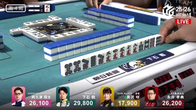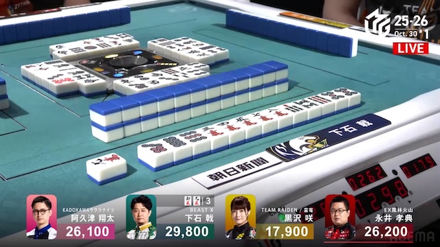 。点棒状況は以下の通りで僅かに下石がリードしているトップ目だ。