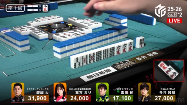 10巡目、多井がテンパイ! 嵌 待ちは山に1枚!