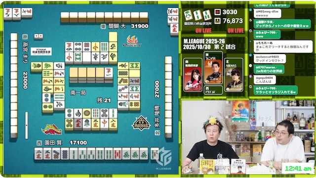 解説・石橋から「 を押した多井のテンパイをケアしているのか?」と、
