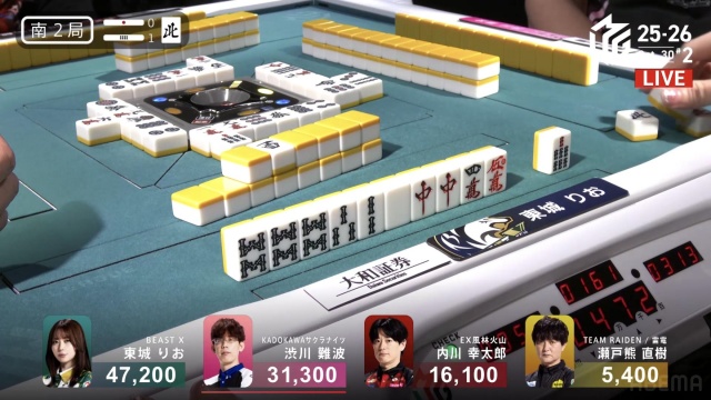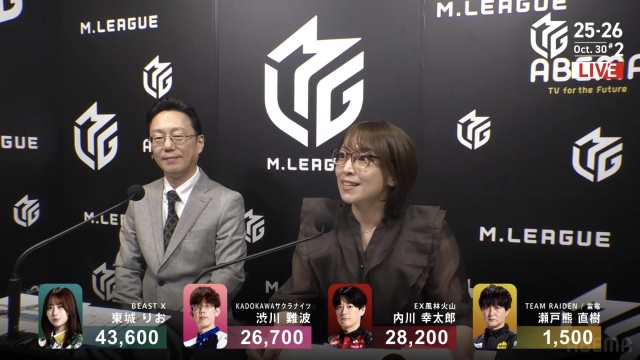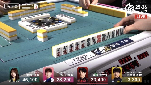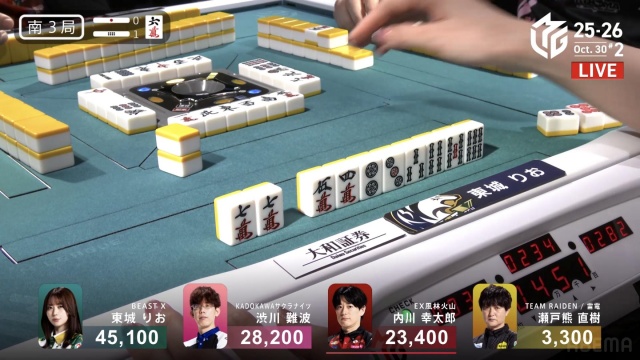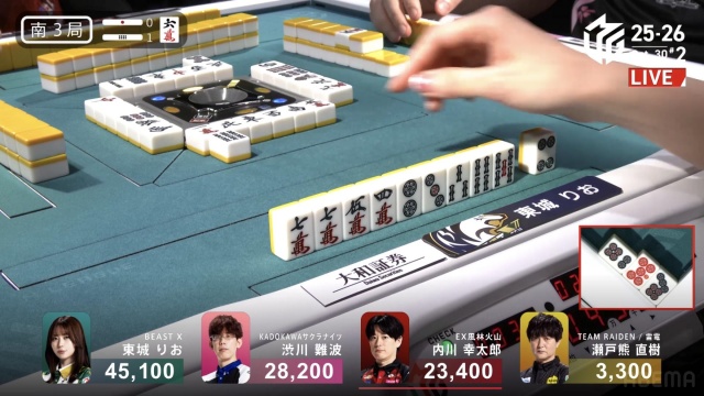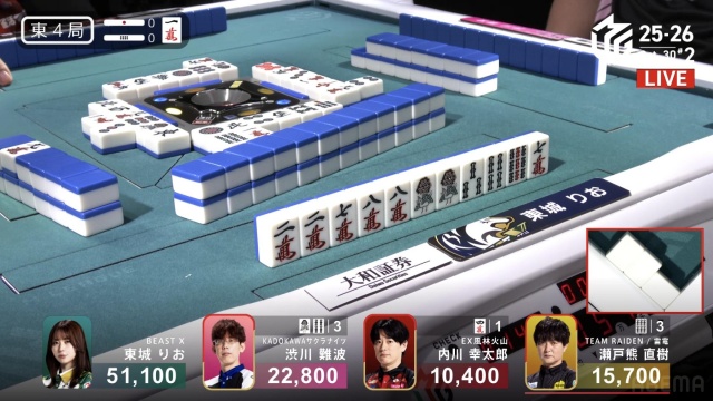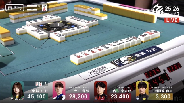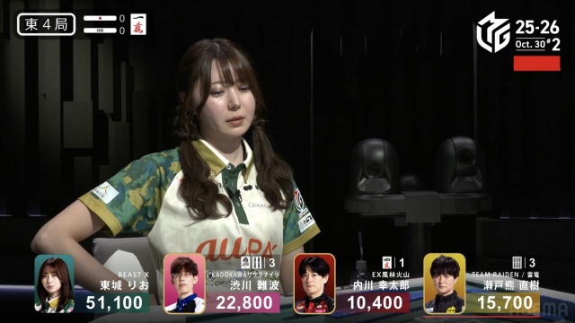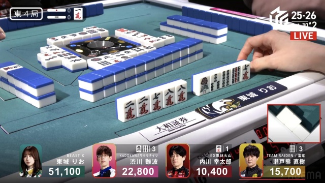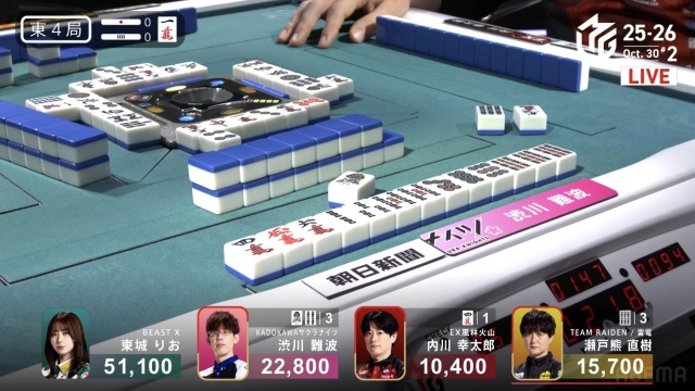 の連打を見せつけながら圧力をかけ、東城の仕掛けと内川のリーチに挟まれた渋川には、大連荘を許さなかった。
