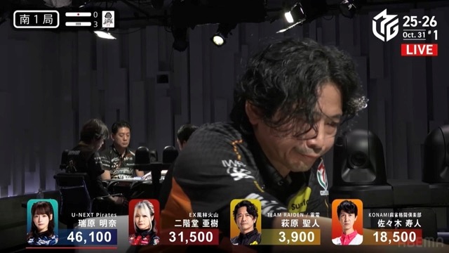 大勝負の明と暗〜瑞原明奈と萩原聖人を別つ南1局2本場【Mリーグ2025-26 レギュラーシーズン 観戦記 10/31 第1試合(麻雀チャンネル)】担当記者 千嶋辰治