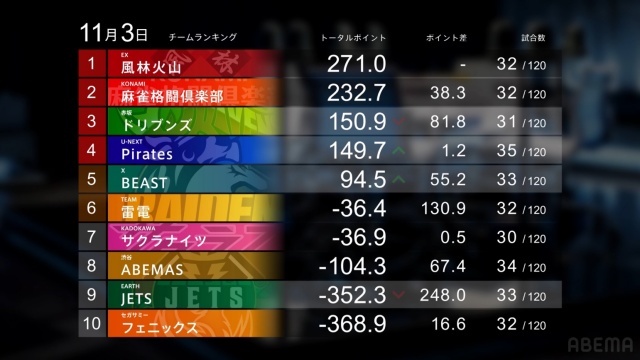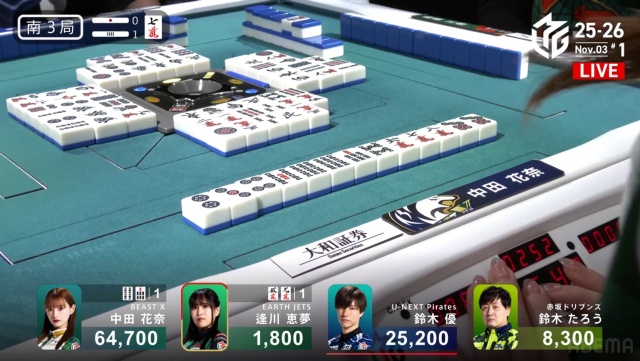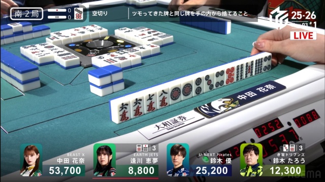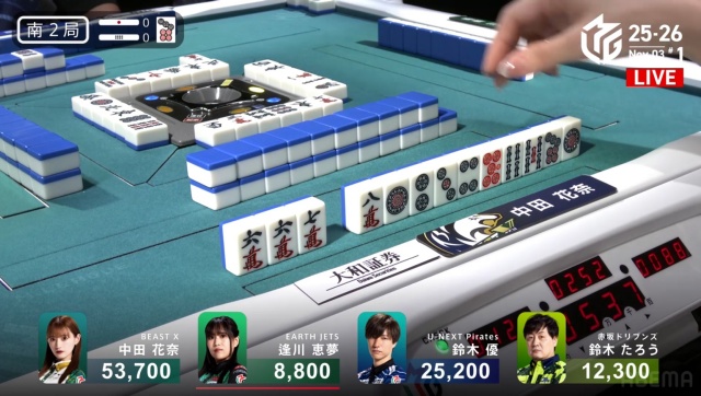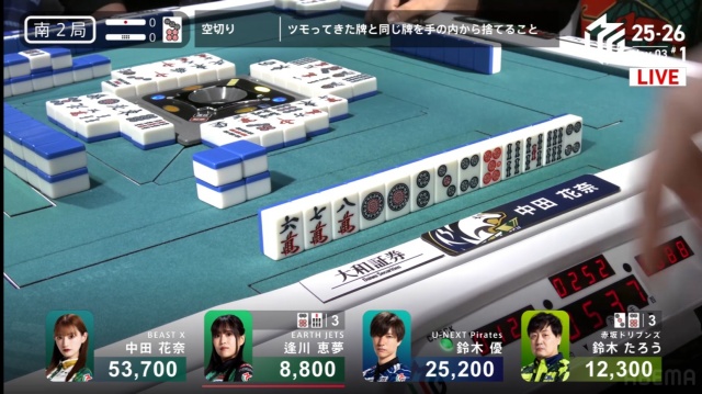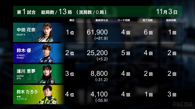 しっかりと勝負するべき時にリーチし、トップを持ち帰った中田。