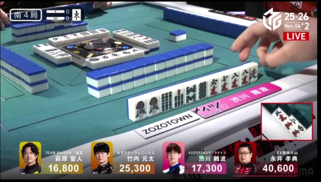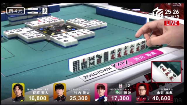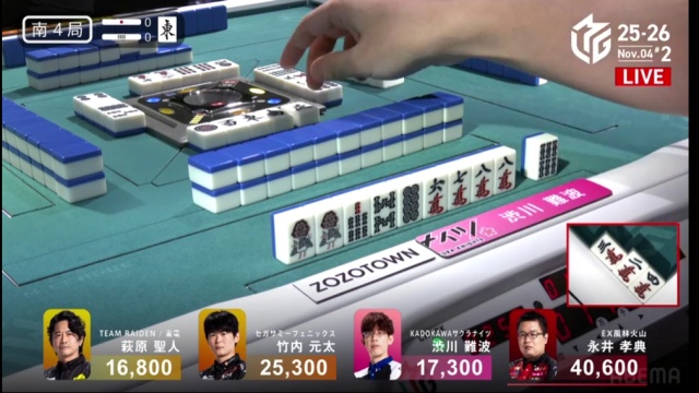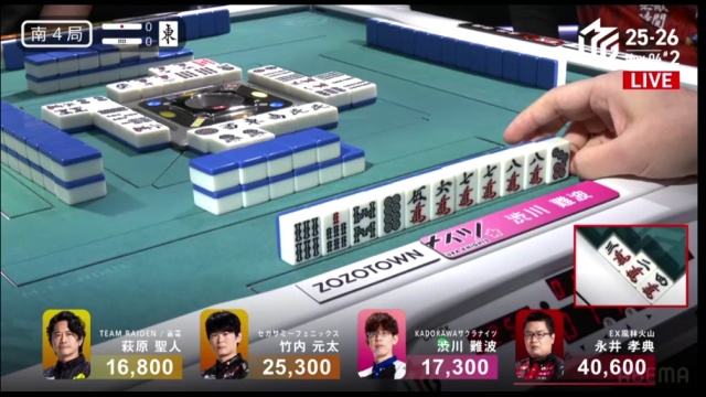渋川、300・500のツモは、値千金のラス回避。