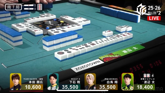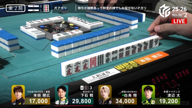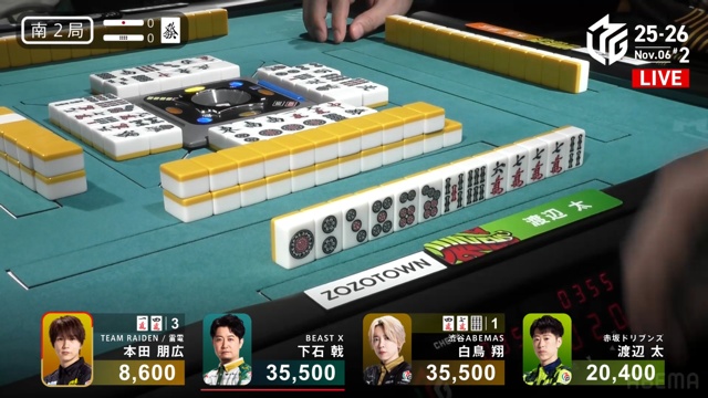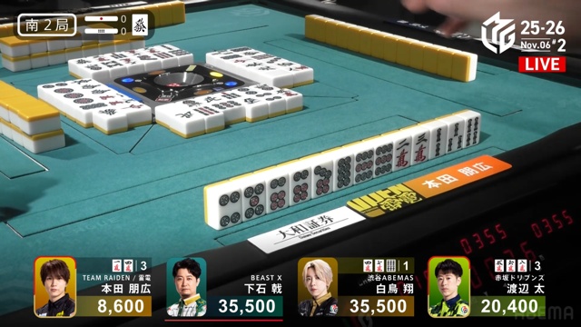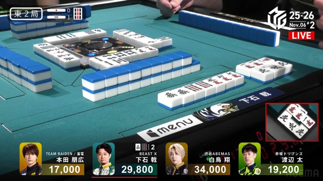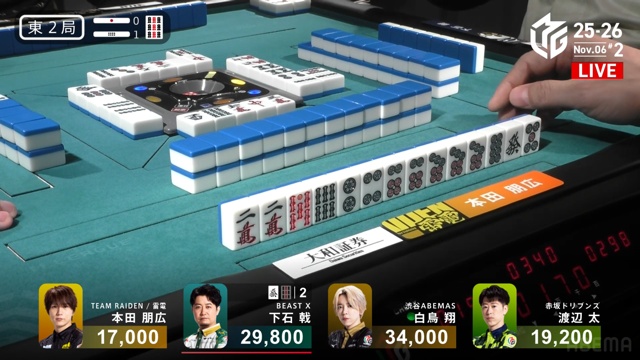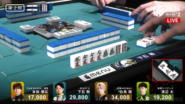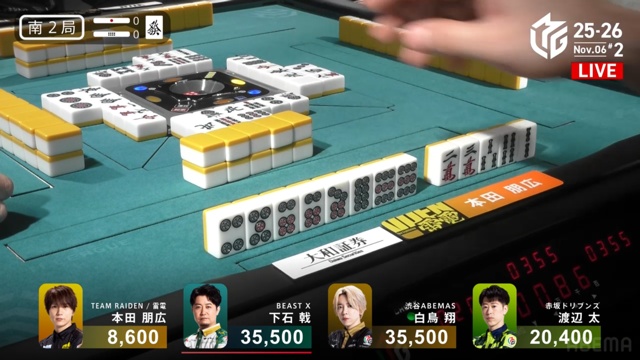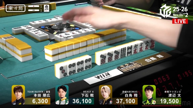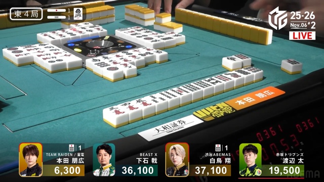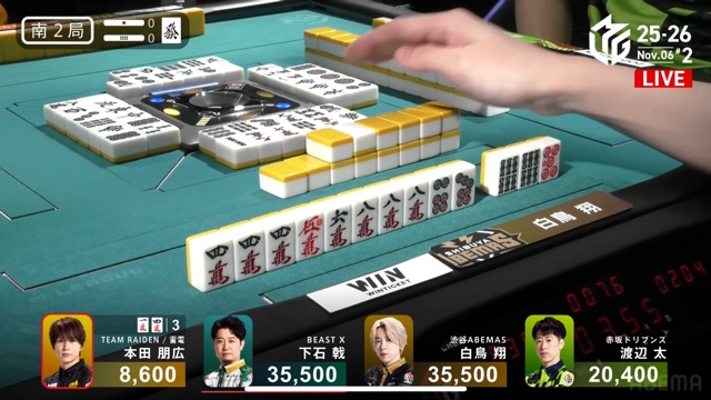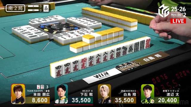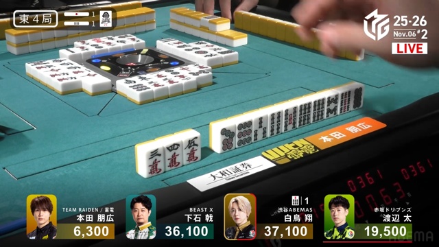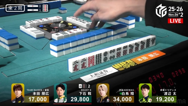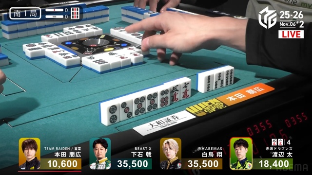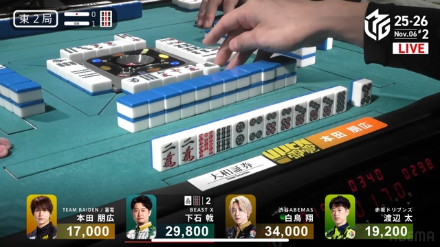11巡目、本田が追っかけリーチ。リーチのみで白鳥と同じくペン