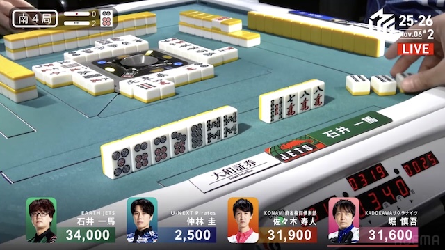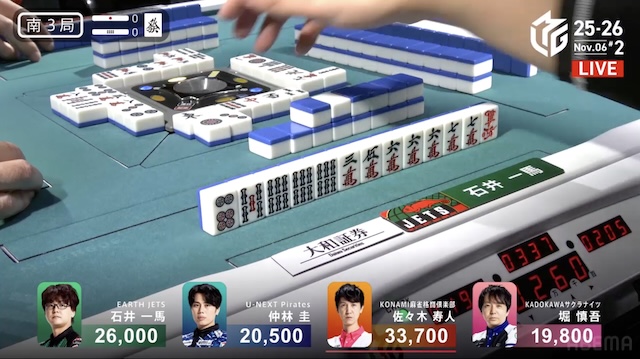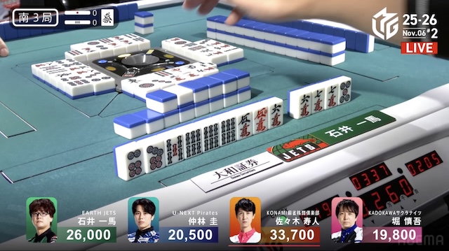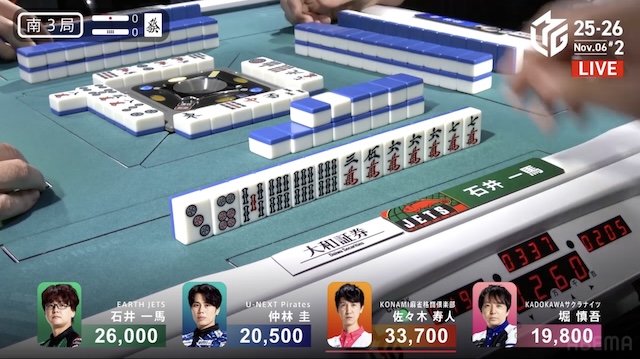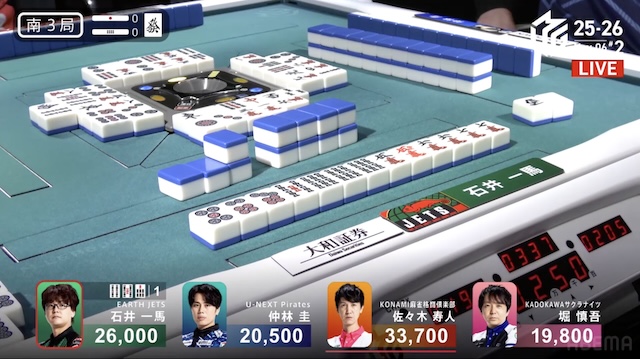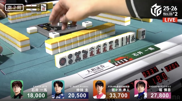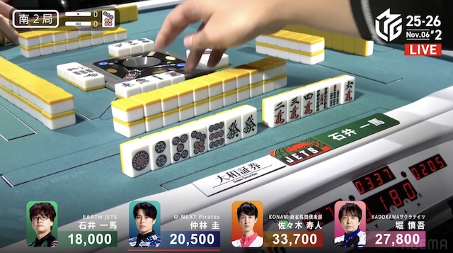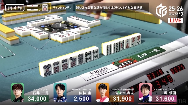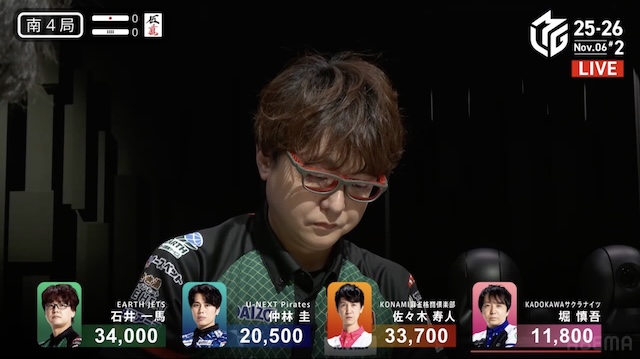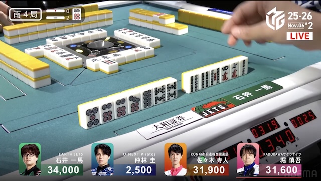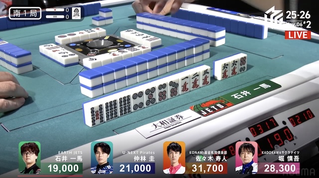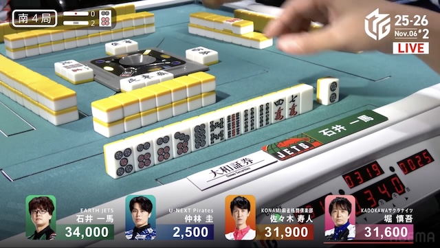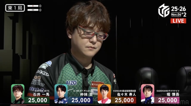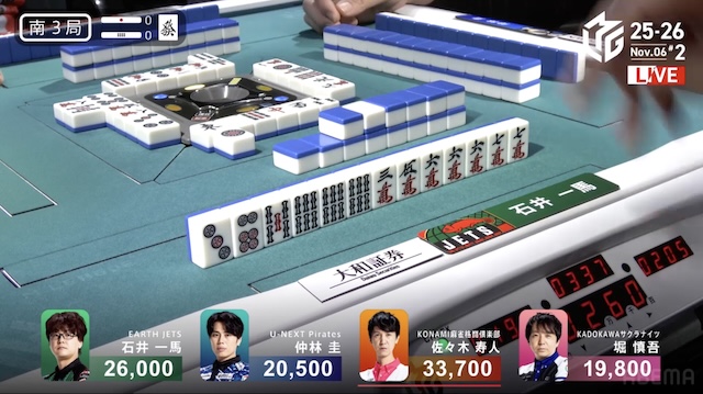 逆境から飛び出せ! 石井一馬、南場のジェット噴射【Mリーグ2025-26 レギュラーシーズン 観戦記 11/6 第2試合(麻雀チャンネル)】担当記者 東川亮
