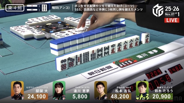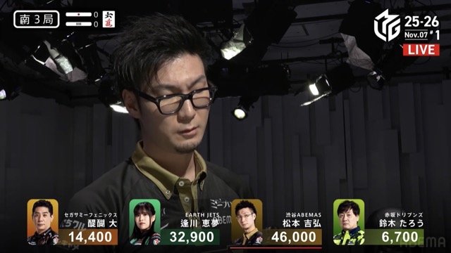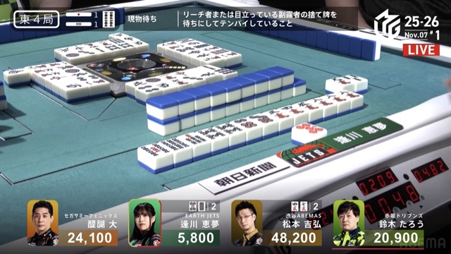 そして、運命の南4局が始まった。条件なしにとにかくアガリたい選手は松本以外の三人。