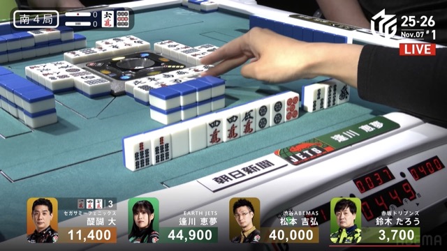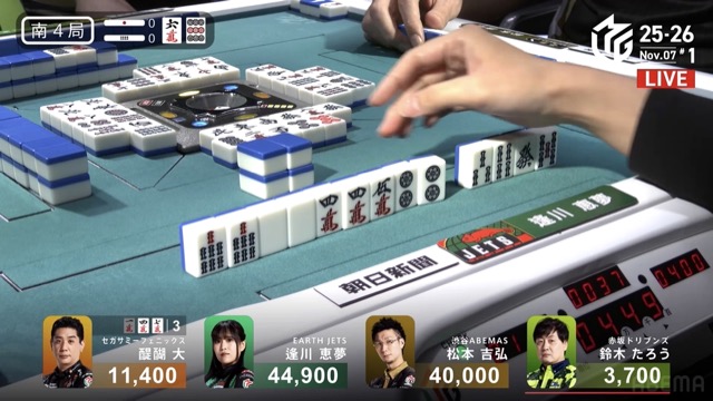 最後は松本がたろう、醍醐との3軒リーチを制して逢川を逆転!