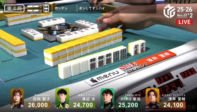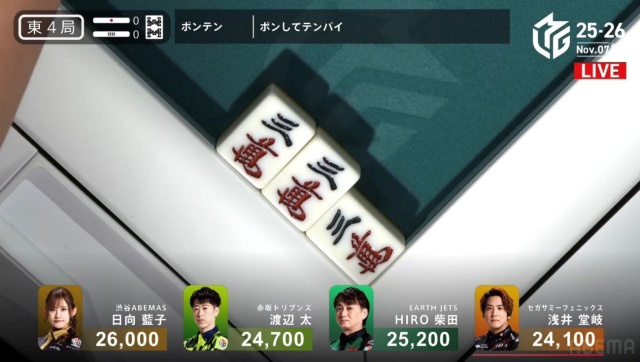 堂岐に合わせてドラを手放したのがHIRO柴田である。