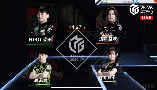 東家:日向藍子(渋谷ABEMAS)