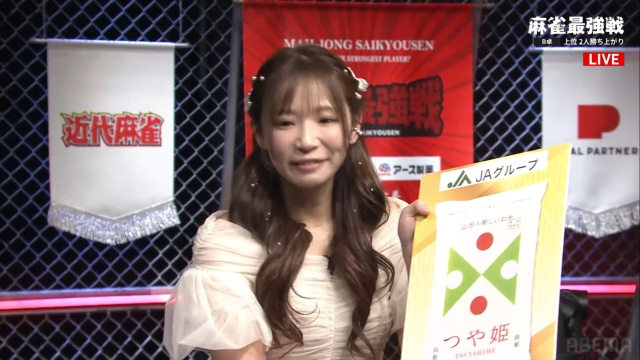 その模様はAbema麻雀チャンネルにて生配信され、B卓からは石田亜沙己プロ・浅見真紀プロが勝ち上がった。また1位勝ち上がりを決めた石田プロにはJA山形より、つや姫5kgが贈られた。