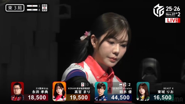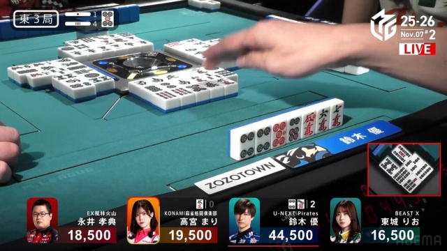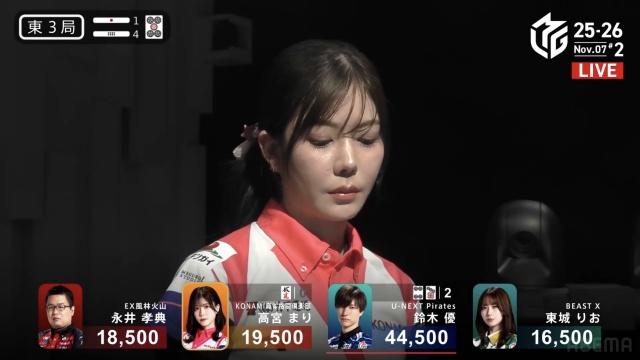 こうして、あっという間の満貫成就で点差は一気に縮まり、東城が優の背中を追いかける展開に。