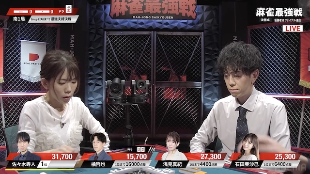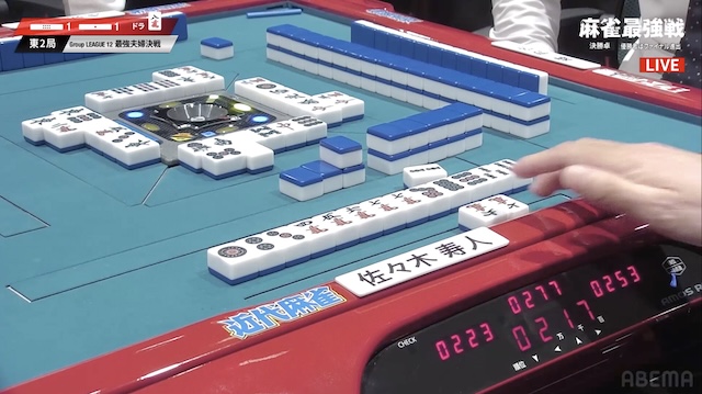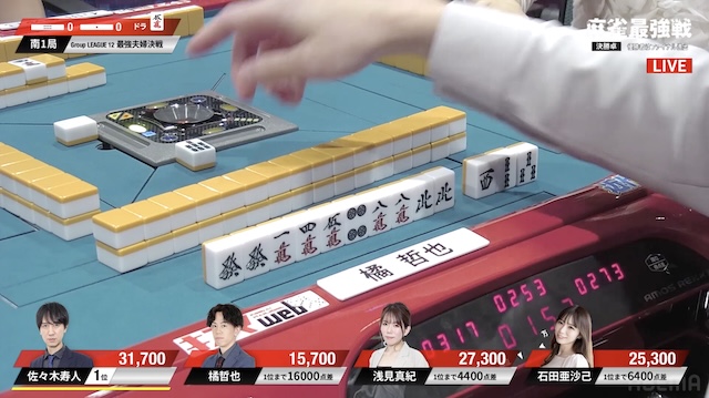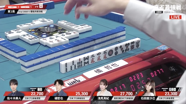 とまあ夫婦に注目したいところだが、もちろん麻雀は4人でやるゲームであり、相手は他にもいる。