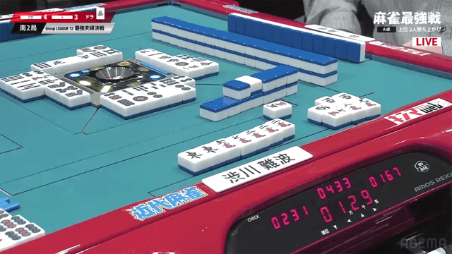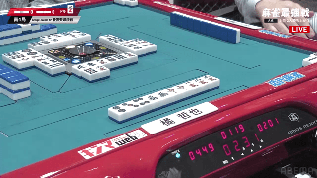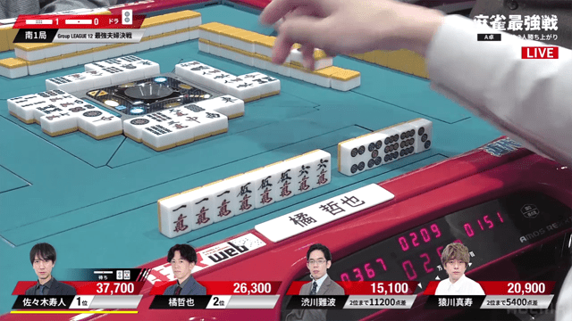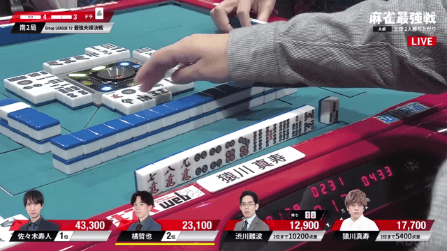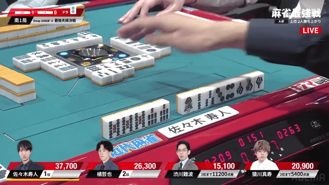 2着の橘と3着の渋川は3000点差。二人の着順が入れ替わることは大いにあり得る。ラス目の猿川は、親で粘りたいところだ。