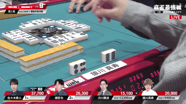 1巡後、猿川は一発目のツモで渋川の当たり牌である