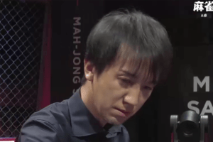 を掴んで放銃。リーチ・ピンフ・タンヤオ・イーペーコーの8000点。親番で勝負をかけた手塚だったが、現実の壁に阻まれる形となった。佐々木・手塚の夫婦対決の夢は、ここで遠のく厳しい展開となった。