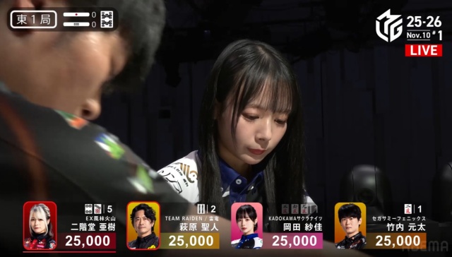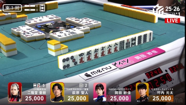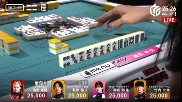 西家:岡田紗佳(KADOKAWAサクラナイツ)