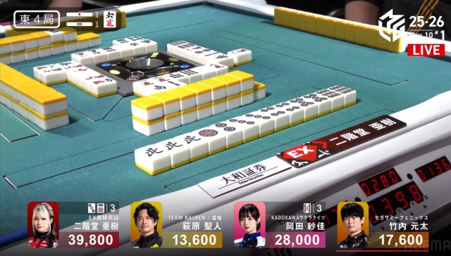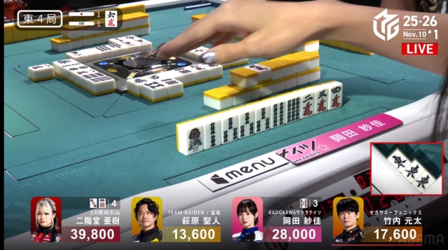 このまま逃げ切りたい亜樹が仕掛ける。役牌