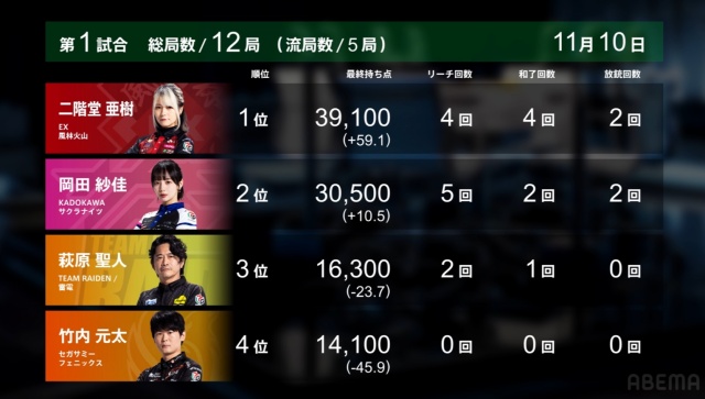 今季新加入の永井が個人首位を走ることもあり、今季選手権監督となっている亜樹も気分が良いだろう。