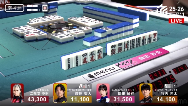 岡田はこれをツモればまだトップへの条件が軽いが――