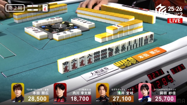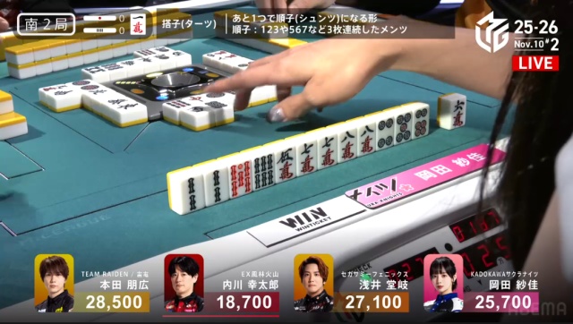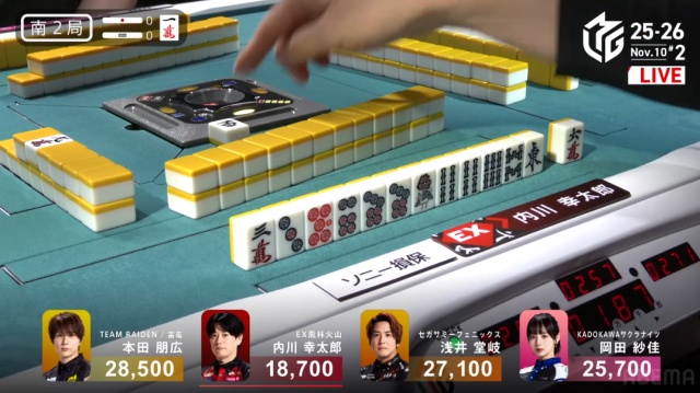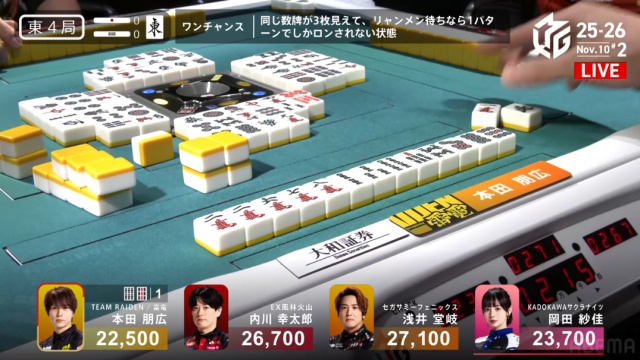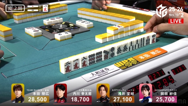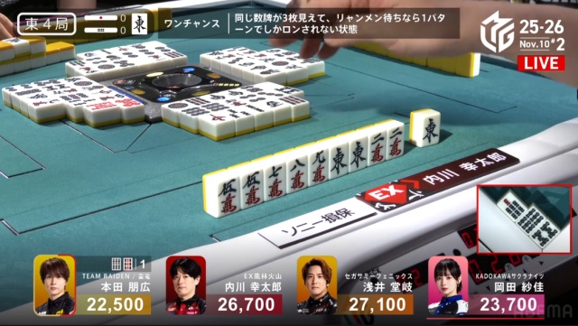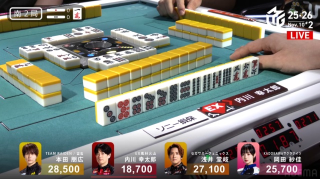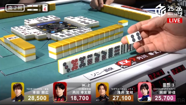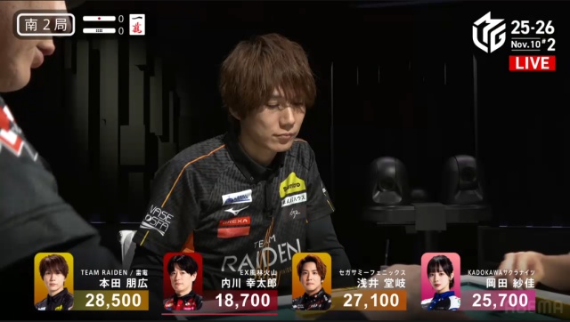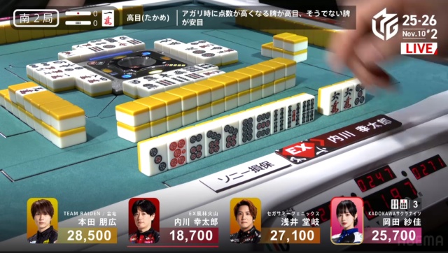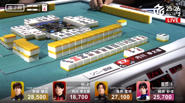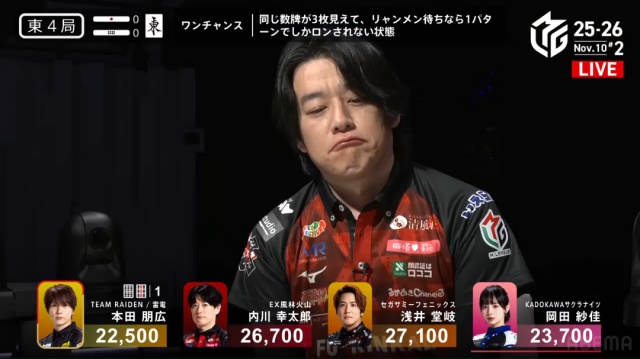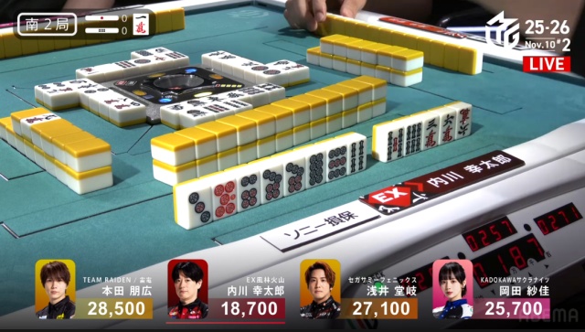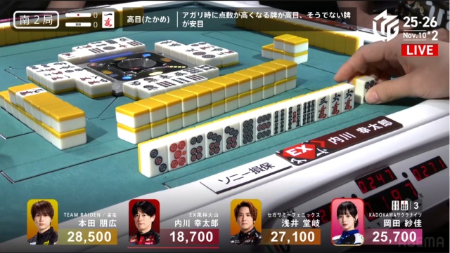 勝利のチャンスはその一瞬、内川幸太郎に課された女神の試練。【Mリーグ2025-26 レギュラーシーズン 観戦記 11/10 第2試合】担当記者 渡邉浩史郎