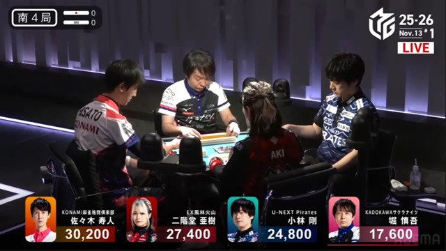 堀と亜樹も随所に見せ場を作り、特に堀の4000オールは流れを変える一撃に。全員が勝機を持ち、誰もが苦しみ、そして輝いた一戦。麻雀の奥深さと一打の重みが凝縮された、濃密な半荘だった。