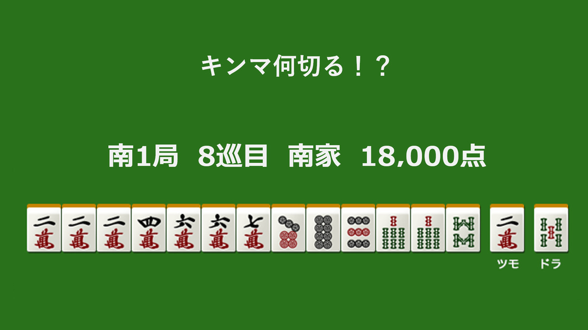 何切る?(麻雀何切る問題)2025.11.17 キンマweb編集部 キンマ何切る!? 【11月17日】 南1局 8巡目 南家 18,000点 キンマ何切る!? 【11月17日】 二萬 二萬カン 四萬 六萬 七萬 7筒 8筒 9筒 7索 8索 結果を見る Loading ... フォロー この記事が気に入ったら フォローをお願いいたします! 最新の麻雀・Mリーグ情報をお届けします! \近代麻雀「何切る」問題におすすめの本!/ ツイート LINE