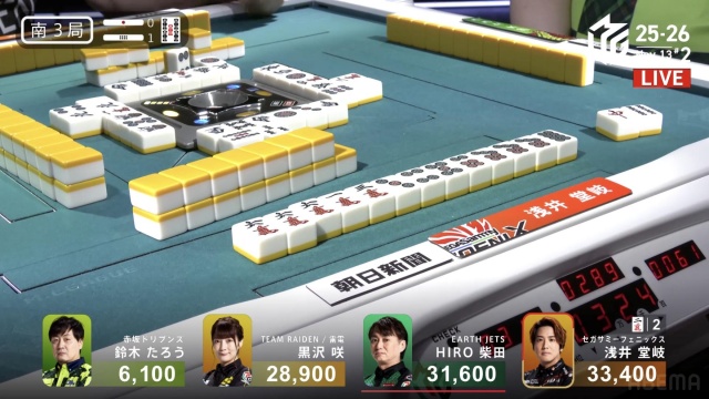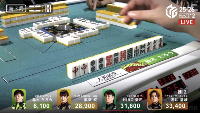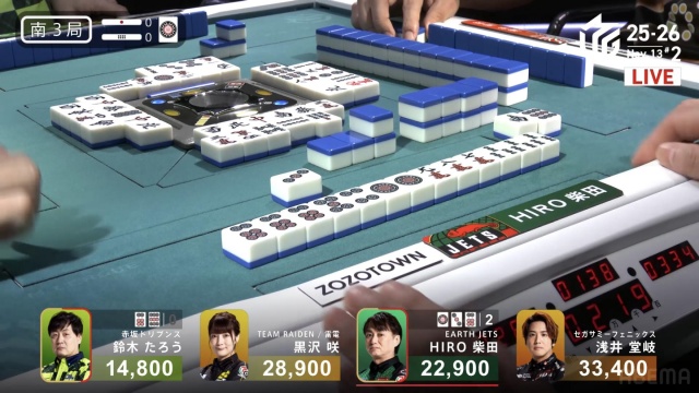 南3局の親番で、たろうとのリーチ合戦に勝利。
