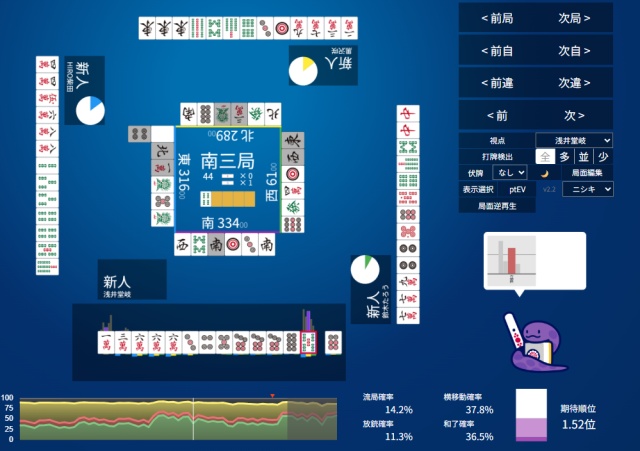 これも、「どの選択も最適打牌の可能性がある」という結果である。