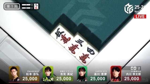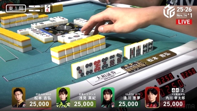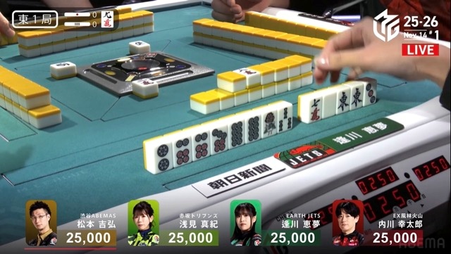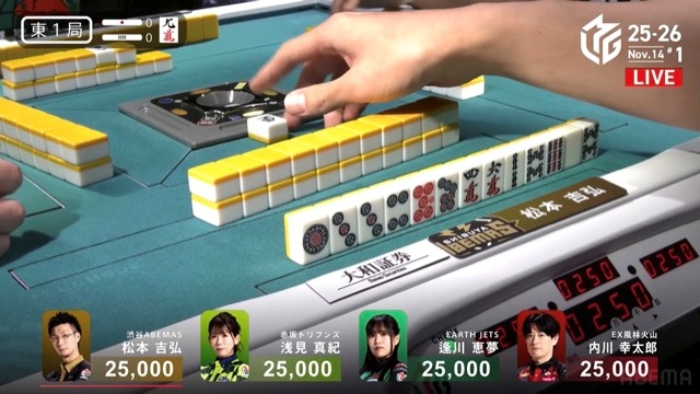 そして楽しみなのが逢川。ピンズのホンイツへ手が伸びれば東1局から大きなリードを築くことができそう。