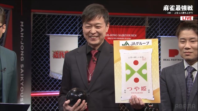 その模様はAbema麻雀チャンネルにて生配信され、A卓からは牛田寿明プロ・福島佑一プロが勝ち上がった。また1位勝ち上がりを決めた牛田プロにはJA山形より、つや姫5kgが贈られた。