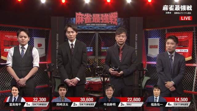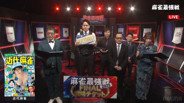 その模様はAbema麻雀チャンネルにて生配信され、當眞脩平プロ(日本プロ麻雀協会)が優勝した。