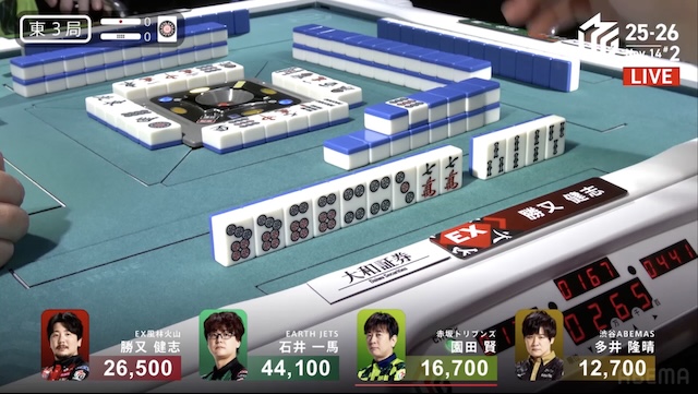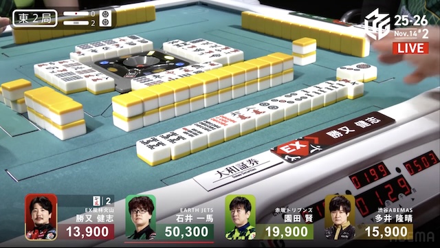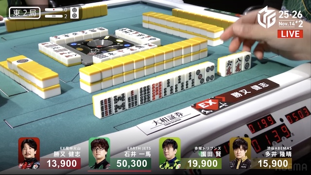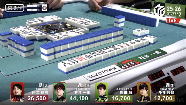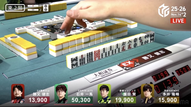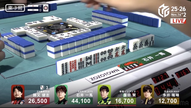 それはさておきて、勝又離脱に奮起したのか、EX風林火山は11月上旬に勝ち星を重ねて首位。麻雀ではポイントを持っているほうが選択肢が増えるが、とりわけ勝又は「軍師」の異名をとるほどにその引き出しが豊富であり、使いどころも的確。ある意味で、彼の持ち味が最も発揮される局面が今の状況と言えるだろう。