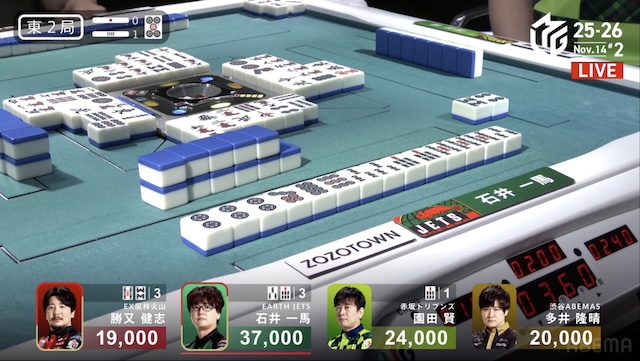 その後は園田に的確に差し込むなど盤石の局回しを見せ、そのままトップを獲得した。