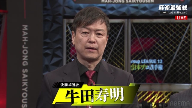 裏ドラは乗らなかったが、牛田は4100オールのアガリで一気にトップ目に立つ。