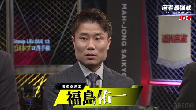 2位通過の福島は、点棒状況を意識した立ち回りで、オーラスでも自分の役割を確実に果たした。