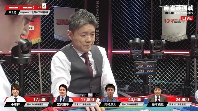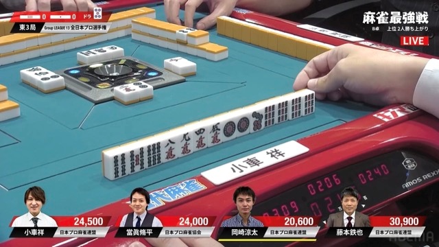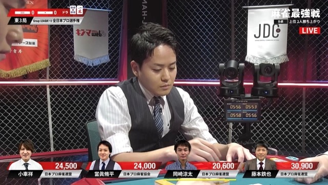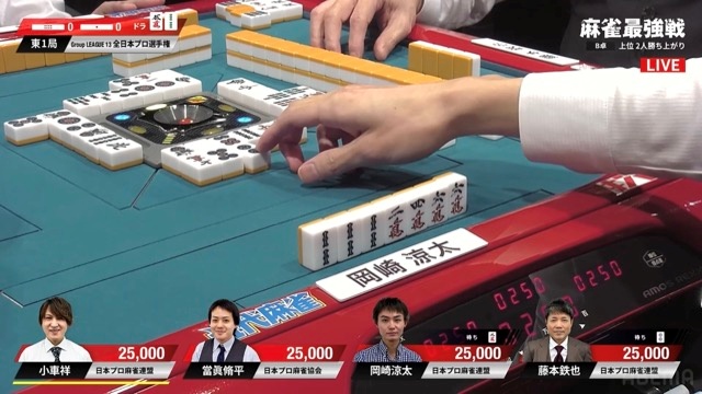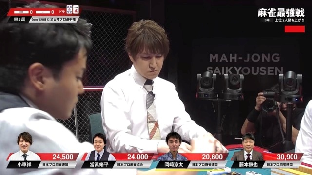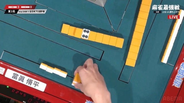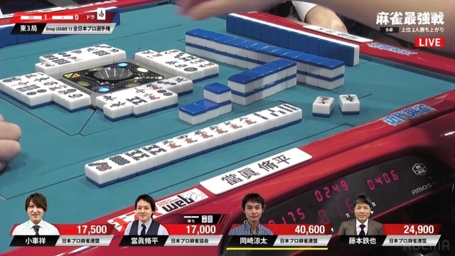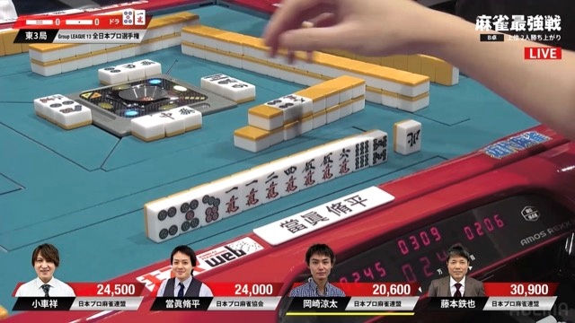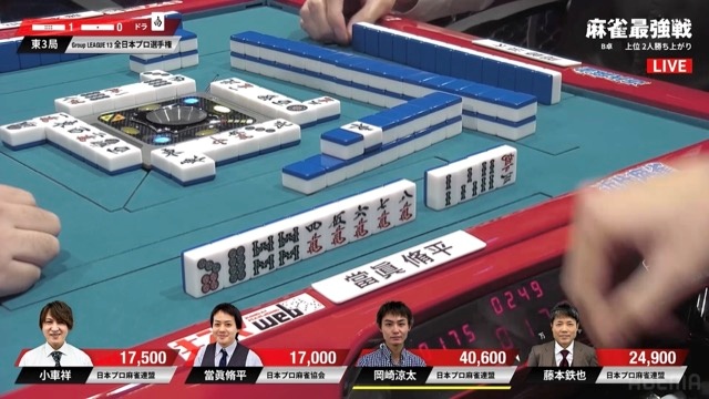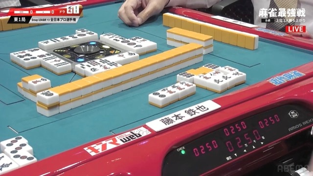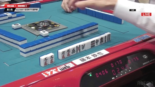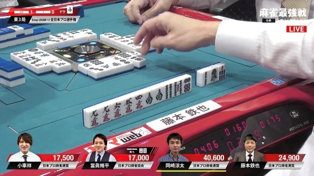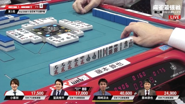 続く東2局は藤本が500-1,000のツモアガリとして迎えた東3局。