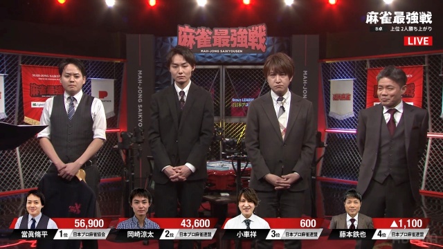 このアガリが決め手となって、勝ち上がりは當眞脩平、岡崎涼太に決まった。