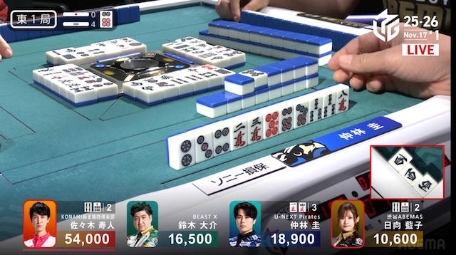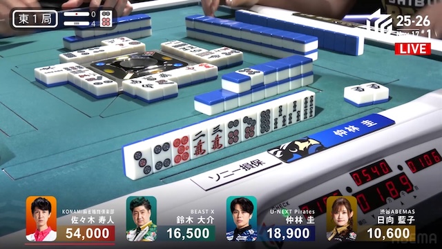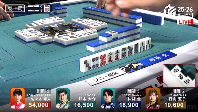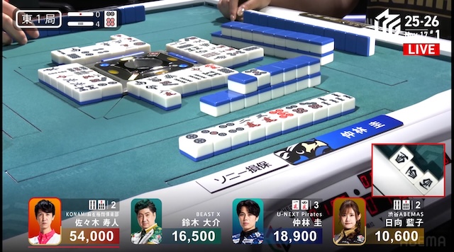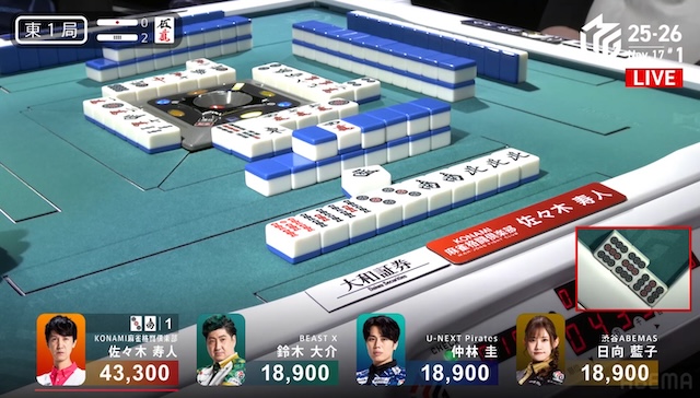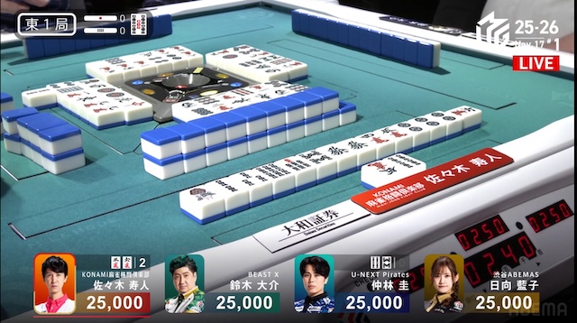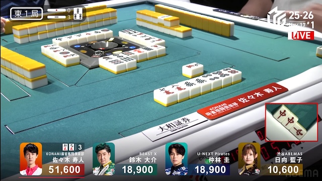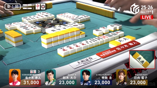 東家:佐々木寿人(KONAMI麻雀格闘倶楽部)