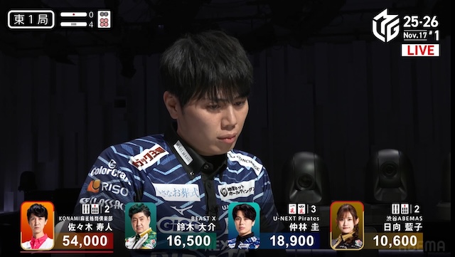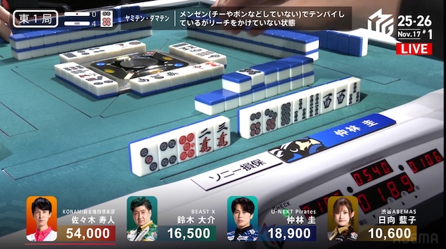 西家:仲林圭(U-NEXT Pirates)