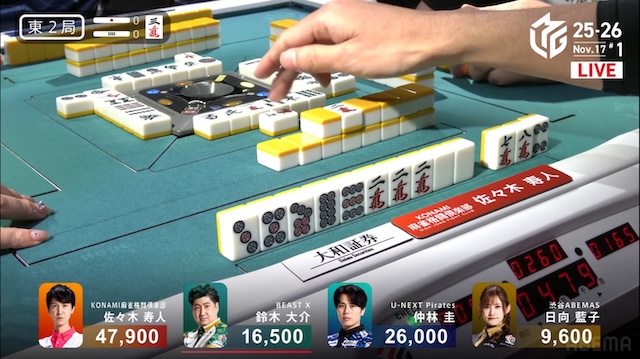 怒涛の4連続アガリで、ついにトップ目に立った。