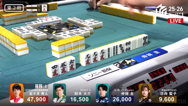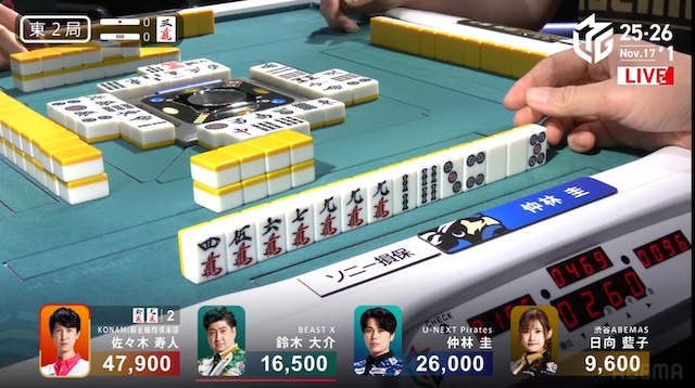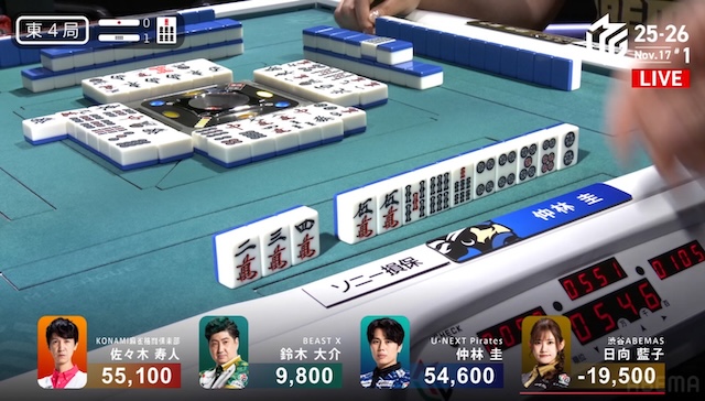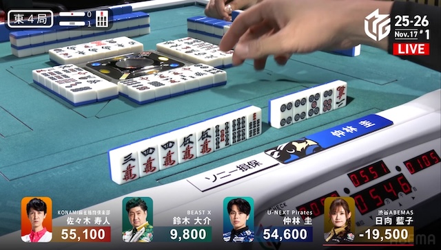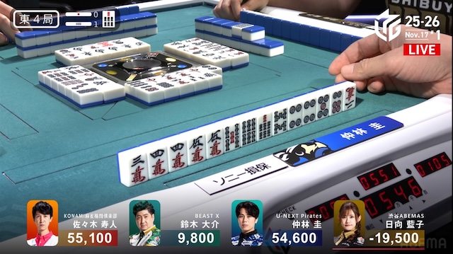 ここ2試合アガリが無く、久しぶりのアガリとなった仲林が、ここから勢いに乗る。