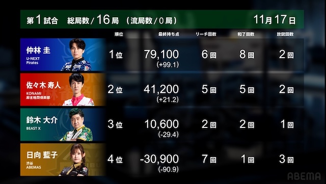 これが6000オールクラスになっていたなら、仲林の素点はもっと削られていたかもしれない。